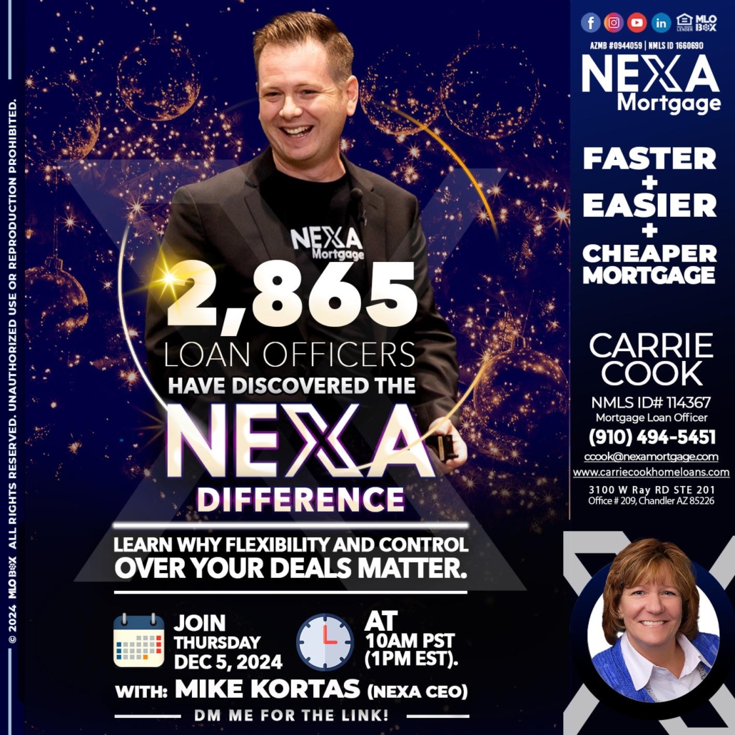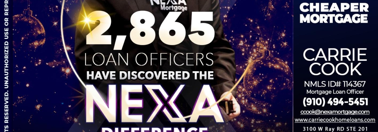 Hi, my name is Carrie Cook. I’m a Loan Officer with NEXA Mortgage LLC., offering personalized mortgage solutions, fast customized quotes, great rates and service with integrity.