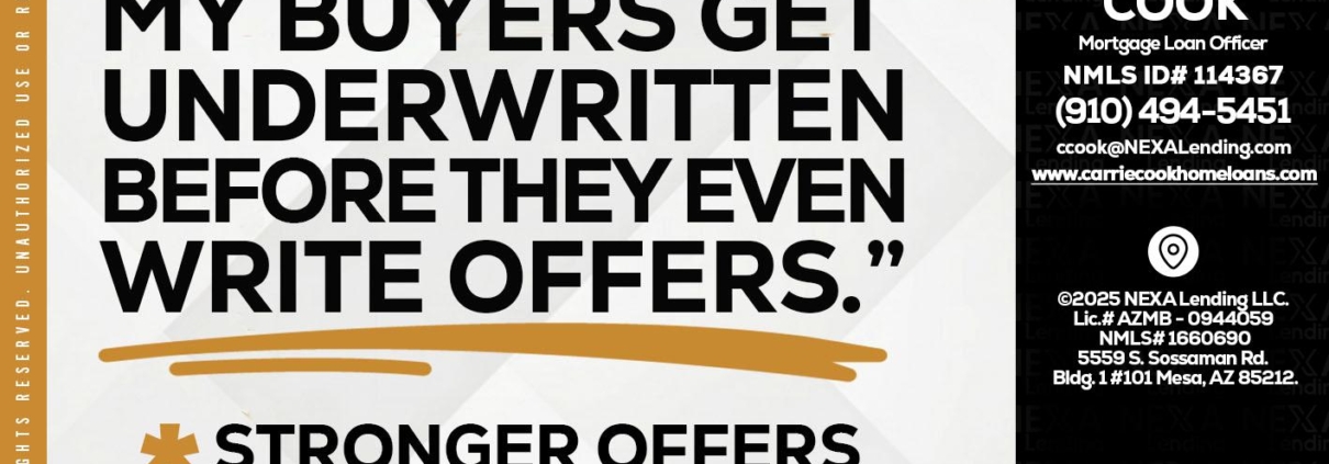 Hi, my name is Carrie Cook. I’m a Loan Officer with NEXA Lending LLC., offering personalized mortgage solutions, fast customized quotes, great rates and service with integrity.