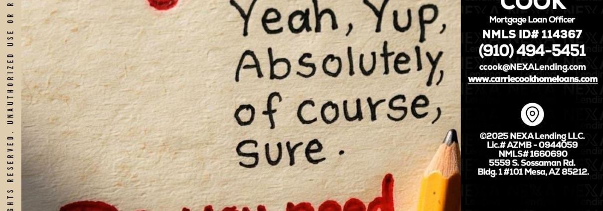 answer without - Carrie Cook -Mortgage Loan OfficerHi, my name is Carrie Cook. I’m a Loan Officer with NEXA Lending LLC., offering personalized mortgage solutions, fast customized quotes, great rates and service with integrity.