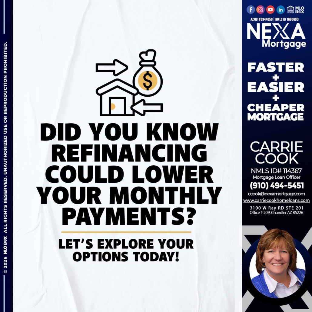 Hi, my name is Carrie Cook. I’m a Loan Officer with NEXA Mortgage LLC., offering personalized mortgage solutions, fast customized quotes, great rates and service with integrity.