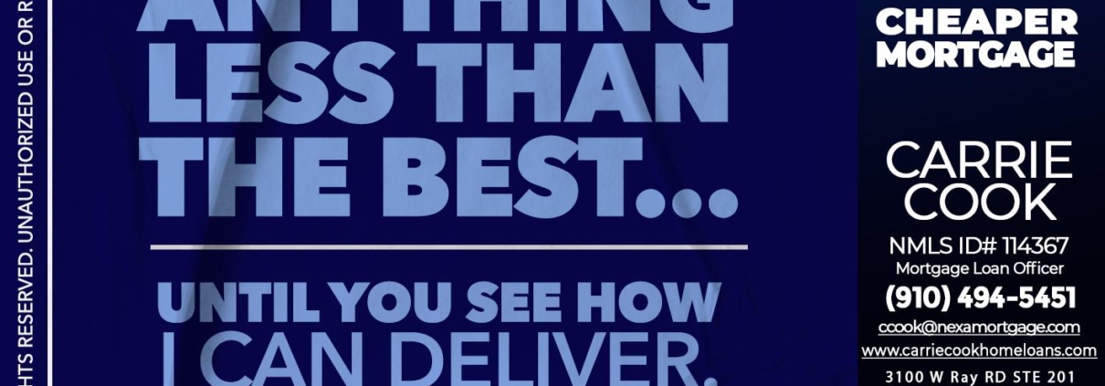 Hi, my name is Carrie Cook. I’m a Loan Officer with NEXA Mortgage LLC., offering personalized mortgage solutions, fast customized quotes, great rates and service with integrity.
