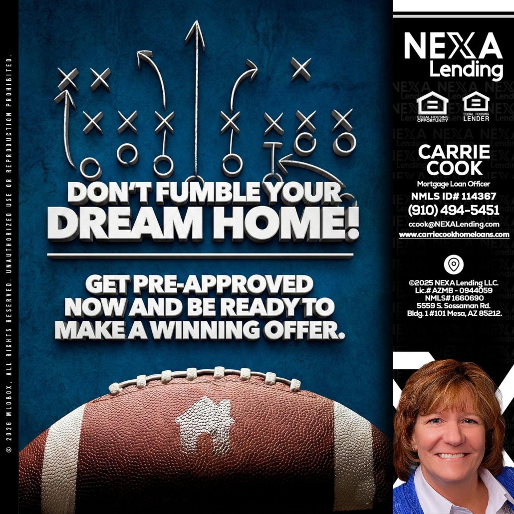 Hi, my name is Carrie Cook. I’m a Loan Officer with NEXA Lending LLC., offering personalized mortgage solutions, fast customized quotes, great rates and service with integrity.