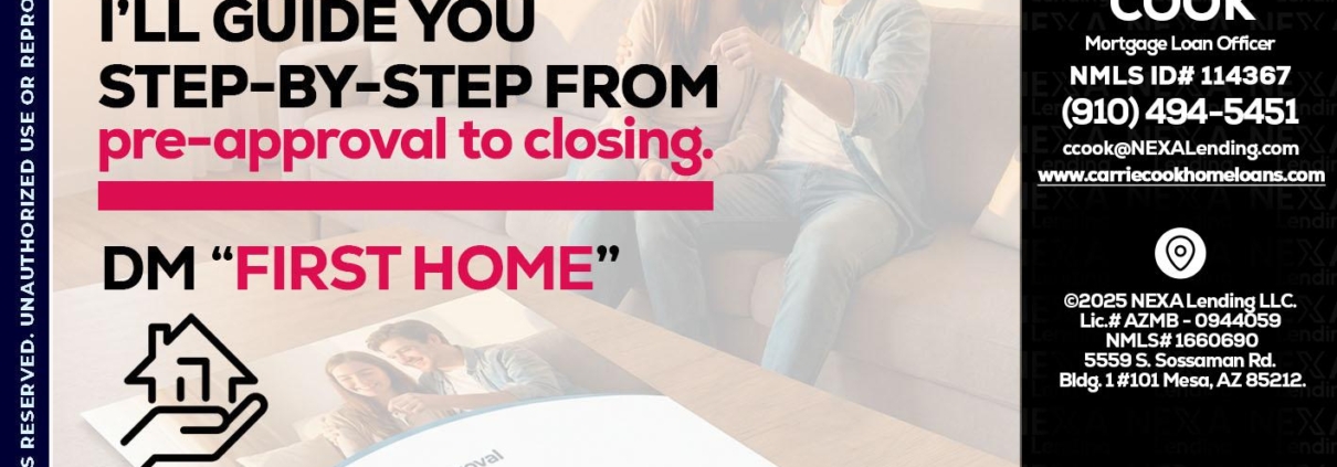 Hi, my name is Carrie Cook. I’m a Loan Officer with NEXA Lending LLC., offering personalized mortgage solutions, fast customized quotes, great rates and service with integrity.
