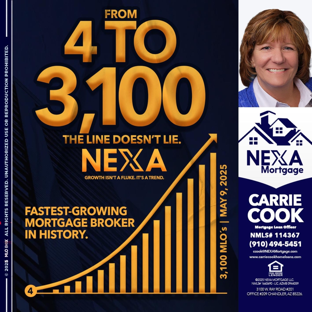 Hi, my name is Carrie Cook. I’m a Loan Officer with NEXA Mortgage LLC., offering personalized mortgage solutions, fast customized quotes, great rates and service with integrity.
