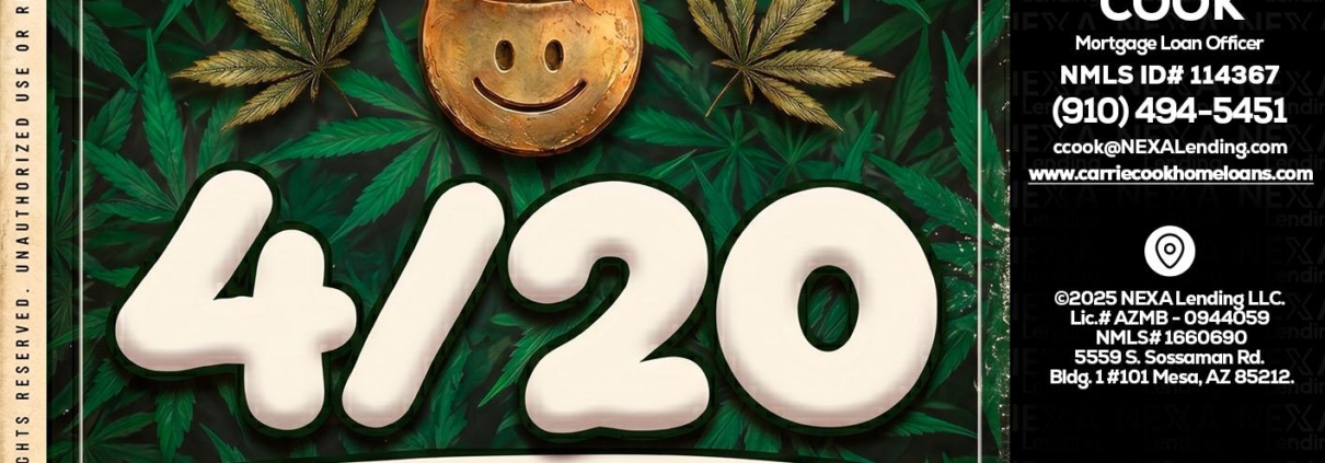 HAPPY 4/20 - Carrie Cook -Mortgage Loan OfficerHi, my name is Carrie Cook. I’m a Loan Officer with NEXA Lending LLC., offering personalized mortgage solutions, fast customized quotes, great rates and service with integrity.