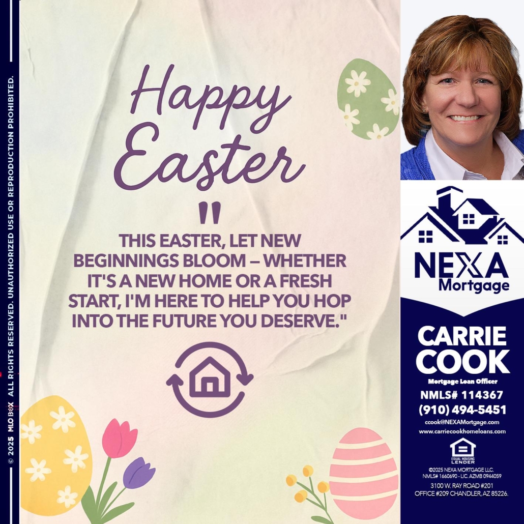 Hi, my name is Carrie Cook. I’m a Loan Officer with NEXA Mortgage LLC., offering personalized mortgage solutions, fast customized quotes, great rates and service with integrity.