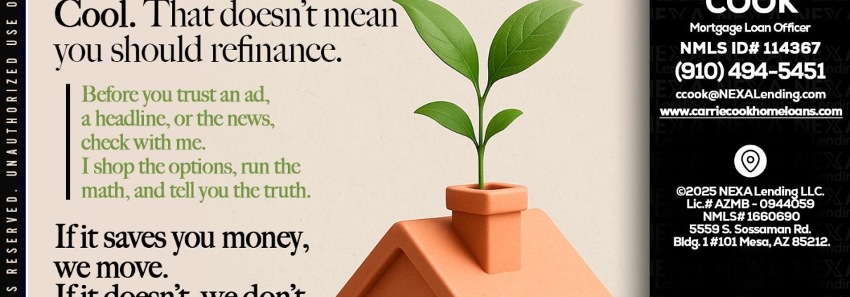 Hi, my name is Carrie Cook. I’m a Loan Officer with NEXA Lending LLC., offering personalized mortgage solutions, fast customized quotes, great rates and service with integrity.