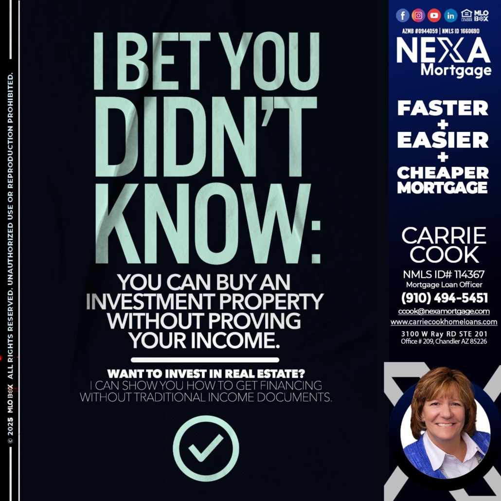 Hi, my name is Carrie Cook. I’m a Loan Officer with NEXA Mortgage LLC., offering personalized mortgage solutions, fast customized quotes, great rates and service with integrity.