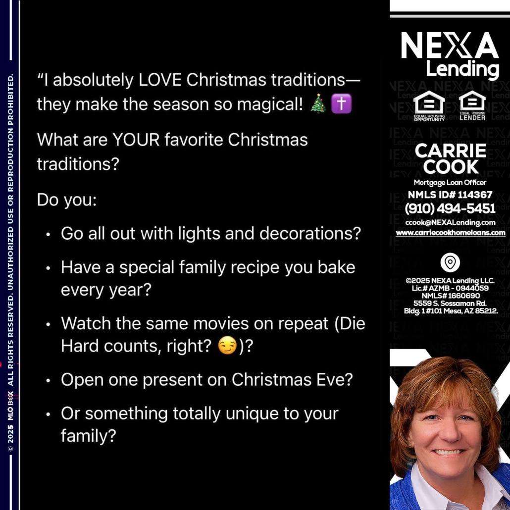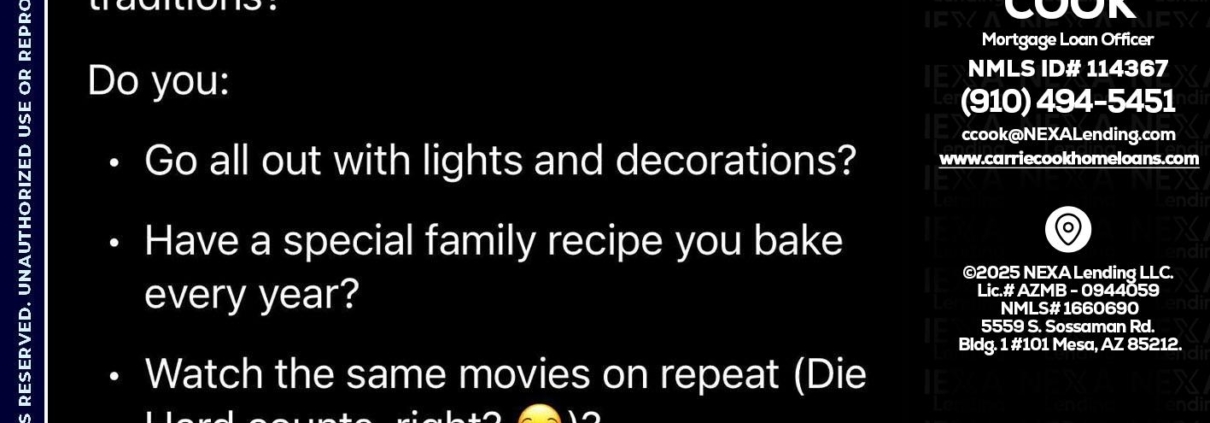 Hi, my name is Carrie Cook. I’m a Loan Officer with NEXA Lending LLC., offering personalized mortgage solutions, fast customized quotes, great rates and service with integrity.