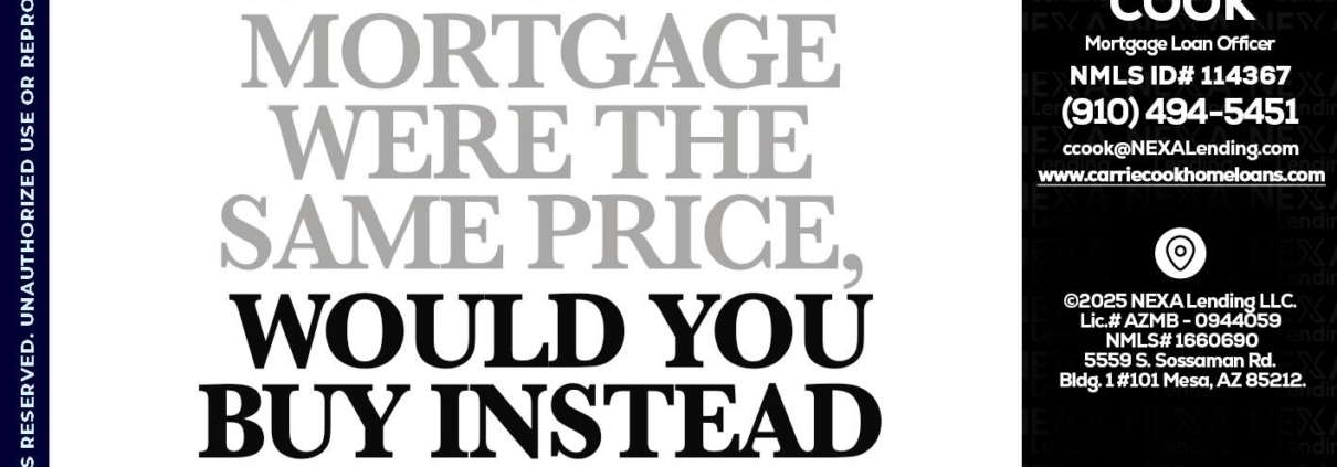 Hi, my name is Carrie Cook. I’m a Loan Officer with NEXA Mortgage LLC., offering personalized mortgage solutions, fast customized quotes, great rates and service with integrity.