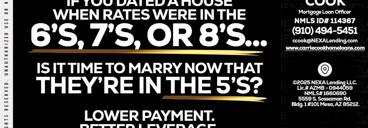 Hi, my name is Carrie Cook. I’m a Loan Officer with NEXA Lending LLC., offering personalized mortgage solutions, fast customized quotes, great rates and service with integrity.