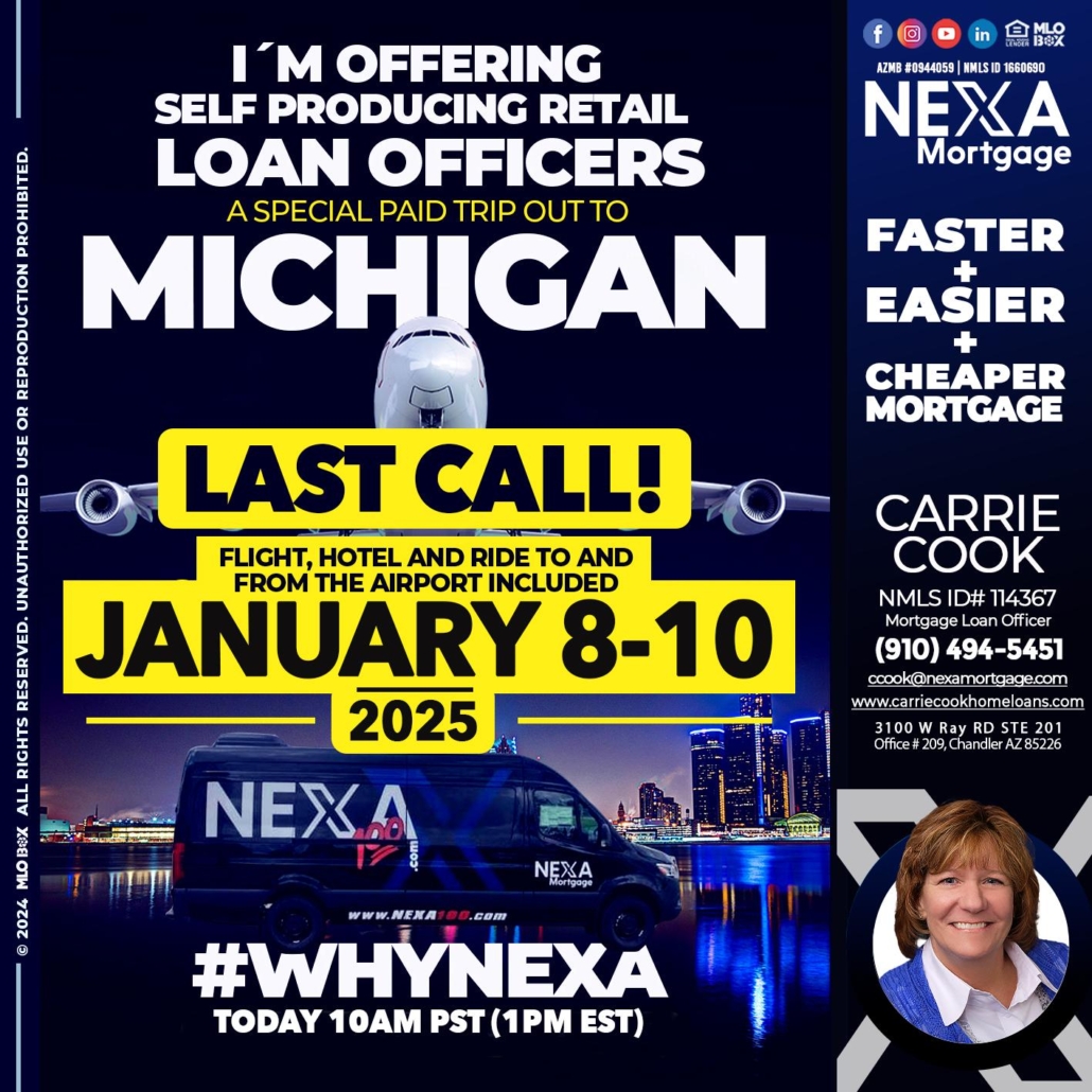 Hi, my name is Carrie Cook. I’m a Loan Officer with NEXA Mortgage LLC., offering personalized mortgage solutions, fast customized quotes, great rates and service with integrity.
