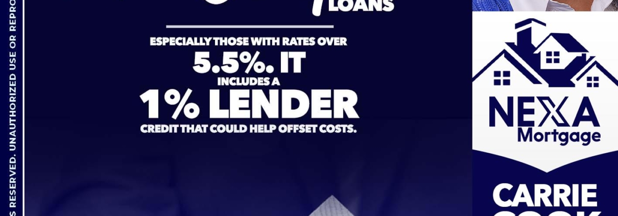 Hi, my name is Carrie Cook. I’m a Loan Officer with NEXA Mortgage LLC., offering personalized mortgage solutions, fast customized quotes, great rates and service with integrity.