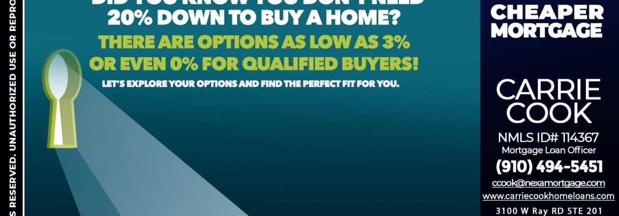 Hi, my name is Carrie Cook. I’m a Loan Officer with NEXA Mortgage LLC., offering personalized mortgage solutions, fast customized quotes, great rates and service with integrity.