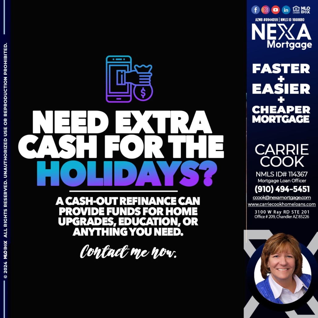 Hi, my name is Carrie Cook. I’m a Loan Officer with NEXA Mortgage LLC., offering personalized mortgage solutions, fast customized quotes, great rates and service with integrity.