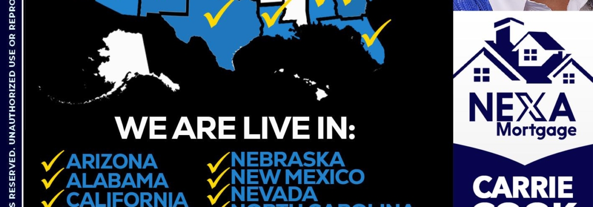 Hi, my name is Carrie Cook. I’m a Loan Officer with NEXA Mortgage LLC., offering personalized mortgage solutions, fast customized quotes, great rates and service with integrity.