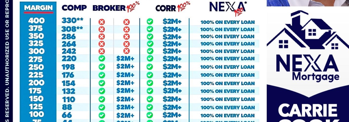 Hi, my name is Carrie Cook. I’m a Loan Officer with NEXA Mortgage LLC., offering personalized mortgage solutions, fast customized quotes, great rates and service with integrity.