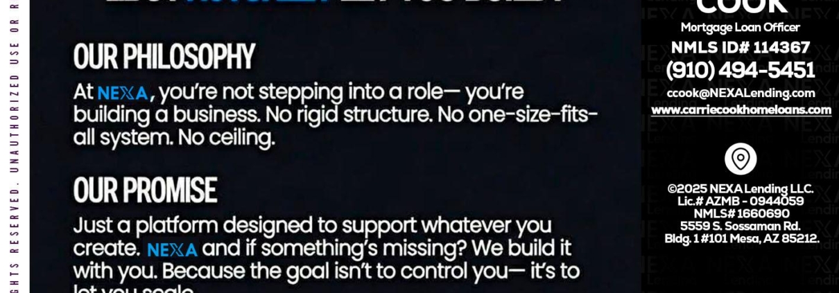 Hi, my name is Carrie Cook. I’m a Loan Officer with NEXA Lending LLC., offering personalized mortgage solutions, fast customized quotes, great rates and service with integrity.