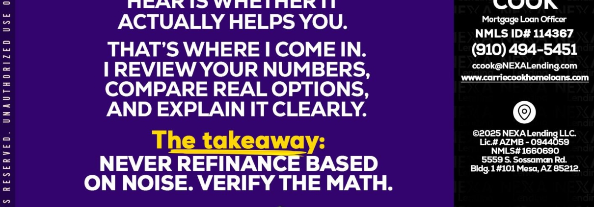 Hi, my name is Carrie Cook. I’m a Loan Officer with NEXA Lending LLC., offering personalized mortgage solutions, fast customized quotes, great rates and service with integrity.