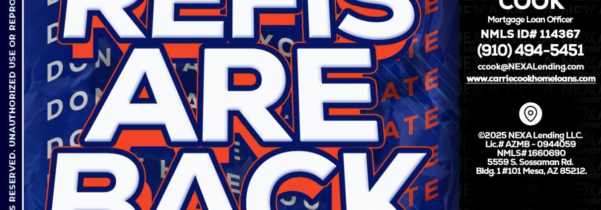 Hi, my name is Carrie Cook. I’m a Loan Officer with NEXA Mortgage LLC., offering personalized mortgage solutions, fast customized quotes, great rates and service with integrity.