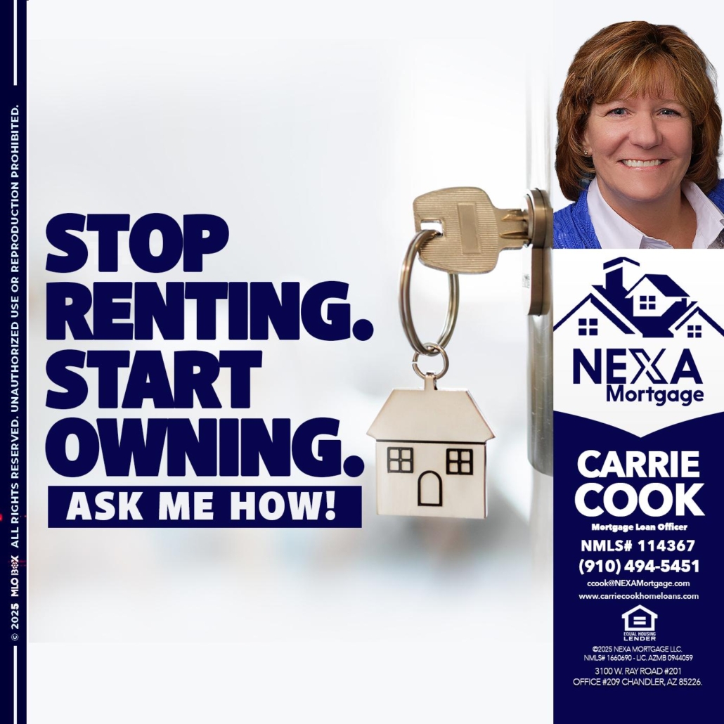 Hi, my name is Carrie Cook. I’m a Loan Officer with NEXA Mortgage LLC., offering personalized mortgage solutions, fast customized quotes, great rates and service with integrity.
