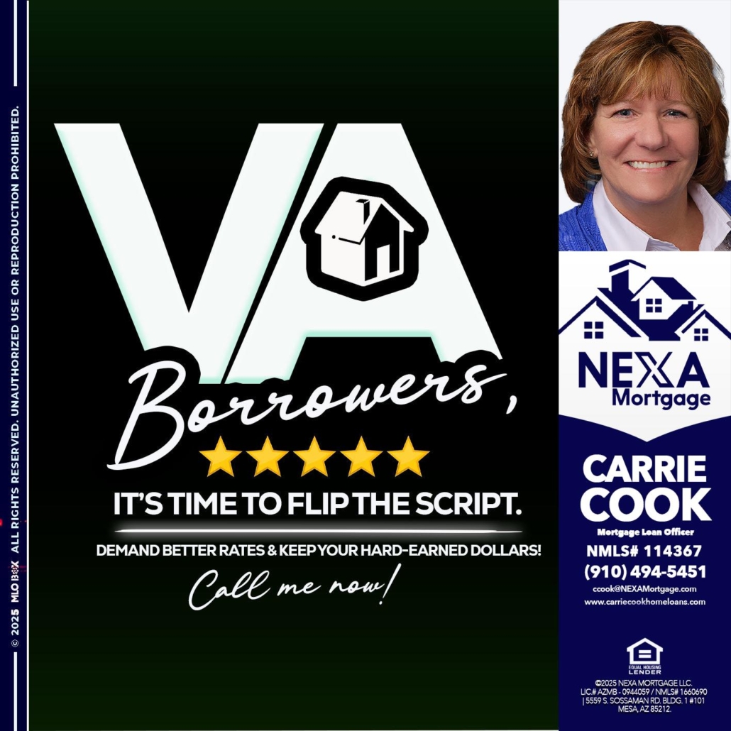 Hi, my name is Carrie Cook. I’m a Loan Officer with NEXA Mortgage LLC., offering personalized mortgage solutions, fast customized quotes, great rates and service with integrity.