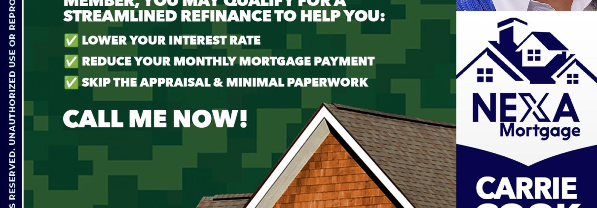 Hi, my name is Carrie Cook. I’m a Loan Officer with NEXA Mortgage LLC., offering personalized mortgage solutions, fast customized quotes, great rates and service with integrity.