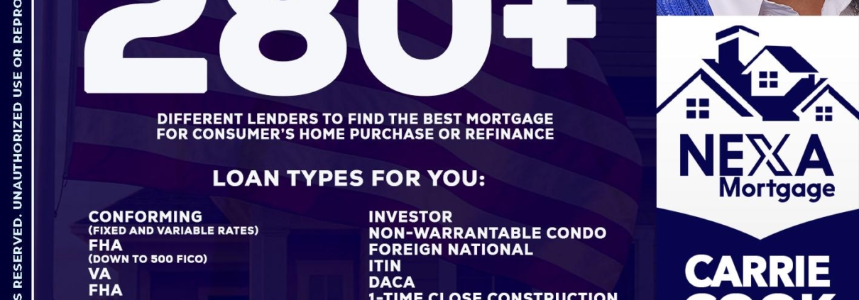 Hi, my name is Carrie Cook. I’m a Loan Officer with NEXA Mortgage LLC., offering personalized mortgage solutions, fast customized quotes, great rates and service with integrity.