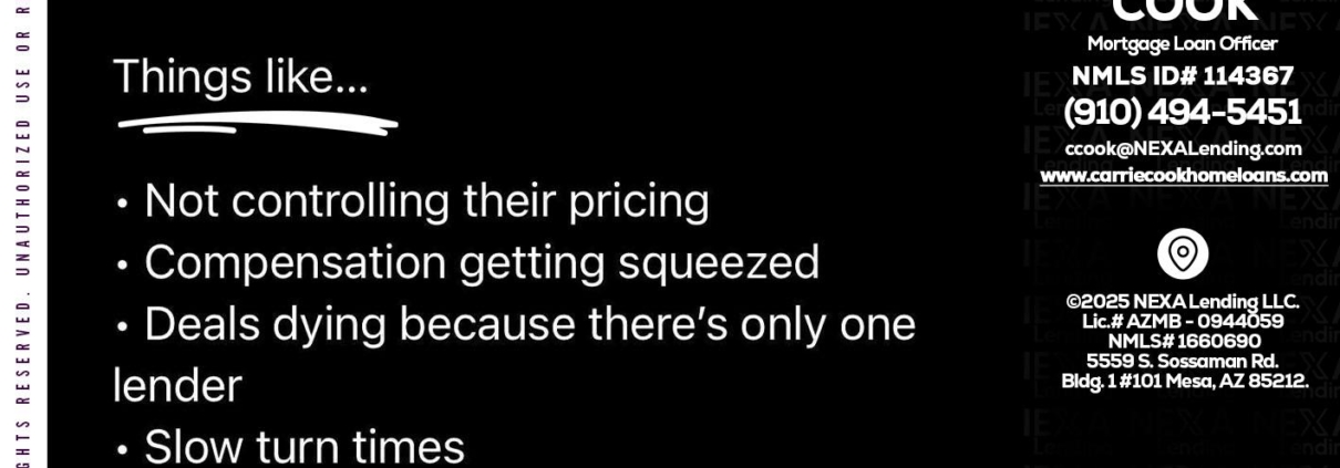 Hi, my name is Carrie Cook. I’m a Loan Officer with NEXA Lending LLC., offering personalized mortgage solutions, fast customized quotes, great rates and service with integrity.