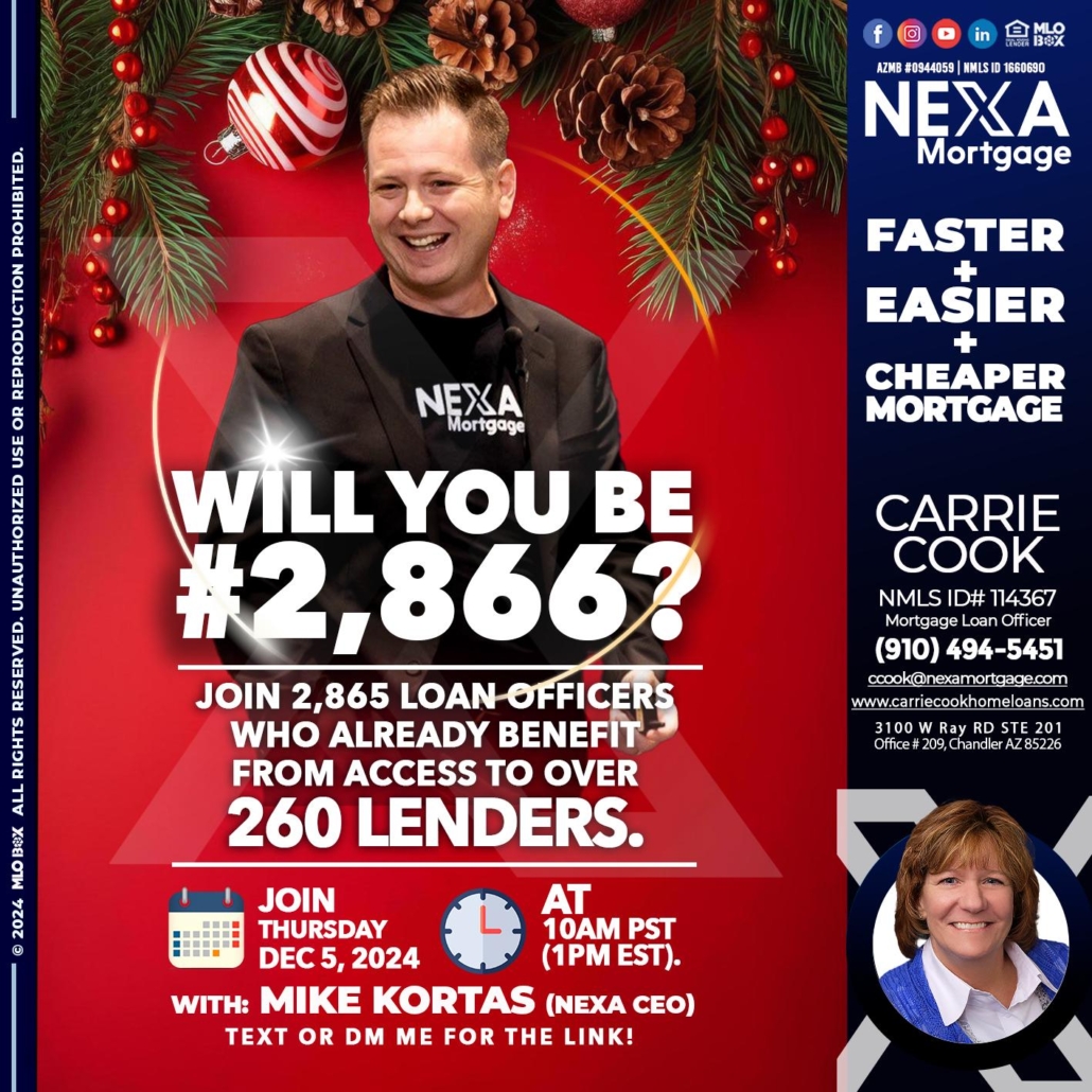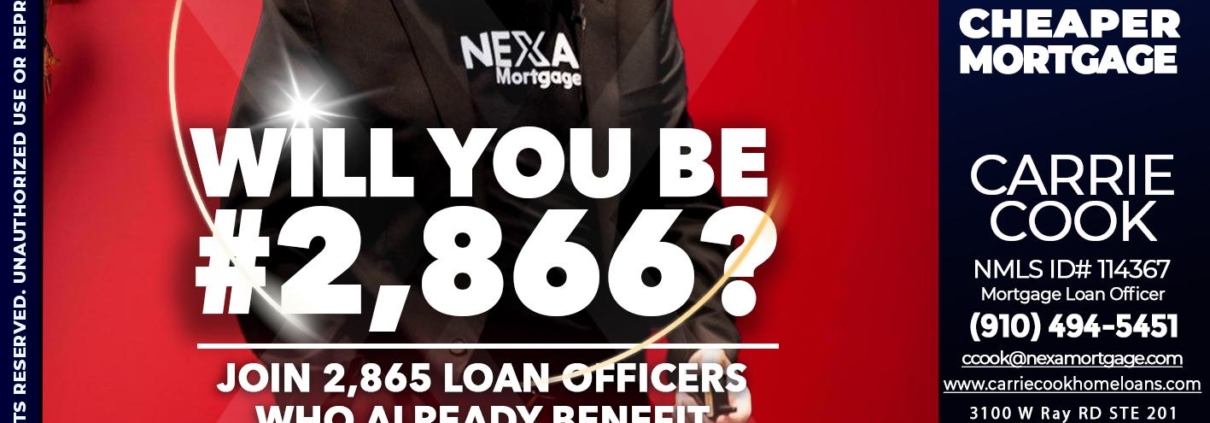 Hi, my name is Carrie Cook. I’m a Loan Officer with NEXA Mortgage LLC., offering personalized mortgage solutions, fast customized quotes, great rates and service with integrity.