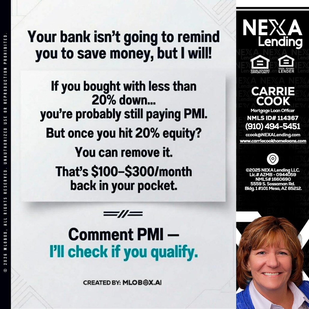Hi, my name is Carrie Cook. I’m a Loan Officer with NEXA Lending LLC., offering personalized mortgage solutions, fast customized quotes, great rates and service with integrity.