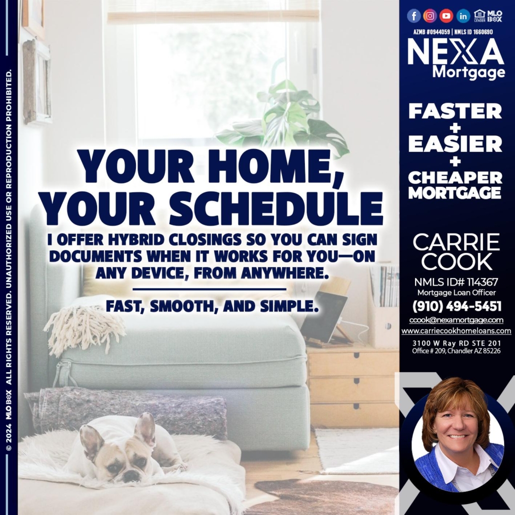 Hi, my name is Carrie Cook. I’m a Loan Officer with NEXA Mortgage LLC., offering personalized mortgage solutions, fast customized quotes, great rates and service with integrity.